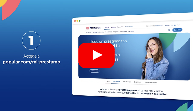 Subject to applying through our digital platform, credit approval, and meeting the parameters established by Banco Popular. If you prefer to apply for an amount over $35,000, apply with a co-applicant, receive your funds by check, or renew your current loan, call 1.888.724.3653 (toll-free). The offers presented on the online platform will have a validity period of 10 days. By selecting an offer, you authorize Banco Popular to make an inquiry into your credit report. This inquiry will be reflected in your credit report and may have an impact on your credit score. The approval process may take longer if additional documents are requested as part of the verification process. The Bank may deny your application if you do not meet the required parameters and conditions. The Annual Percentage Rate (APR) is determined based on your credit history and depends on the term you select. If the purpose of the loan is debt consolidation, the balance of those debts remains the customer’s responsibility. Certain conditions and restrictions apply.