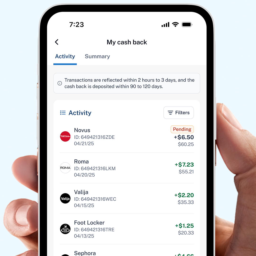Your activity will appear as pending once the merchant confirms the transaction with Banco Popular. Some merchants notify within less than an hour, while others may take several days. You’ll receive an email notification as soon as the new activity is available in the My cash back section.
