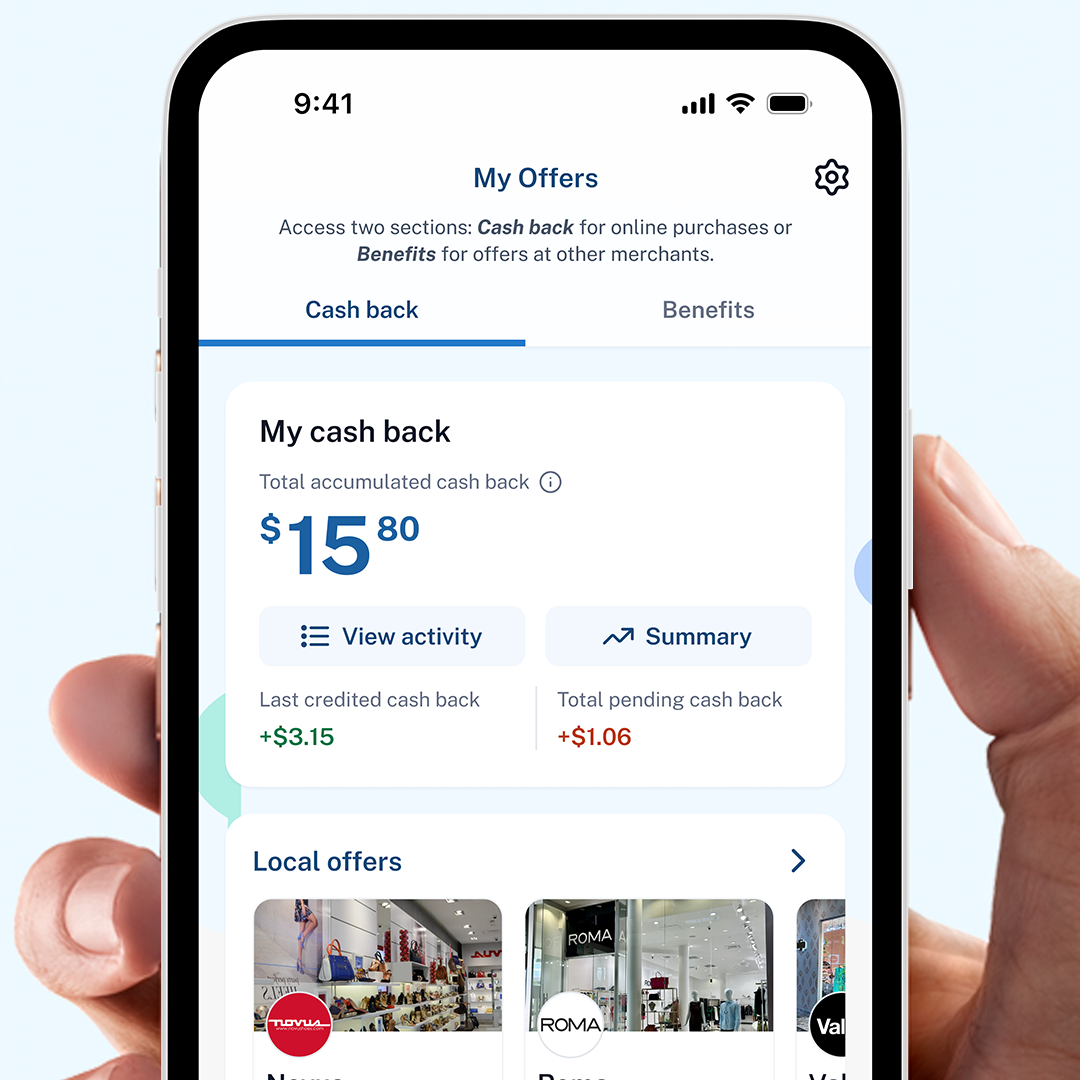 An exclusive Mi BancoSM Mobile platform where you earn cash back and receive benefits when shopping at popular stores. Access from your smartphone and enjoy two ways to save.